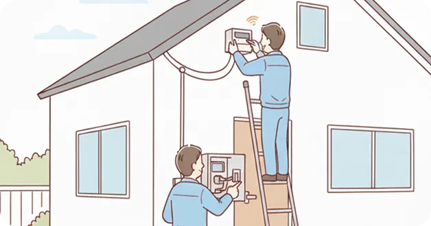 お友だちの建物にTCN工事担当者が引込工事や機器設置を行います。