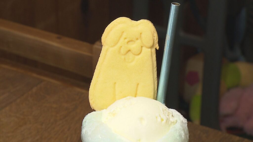 食事やスイーツで満足できますが、さらに看板犬の癒しで至福のひと時を過ごせちゃいます。