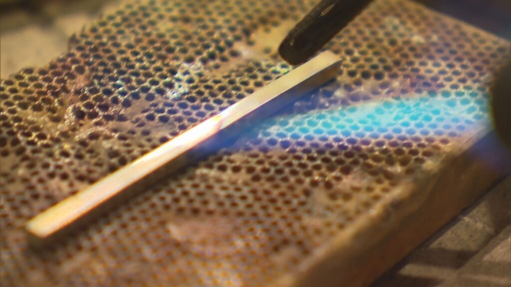 いよいよ彫金体験スタート!まずはバーナーを使って、リングにするシルバーの棒を柔らかくするために炙っていきます🔥