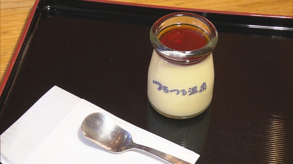 デザートにいただいたつるつる温泉プリンはここに来ないと味わえない逸品。