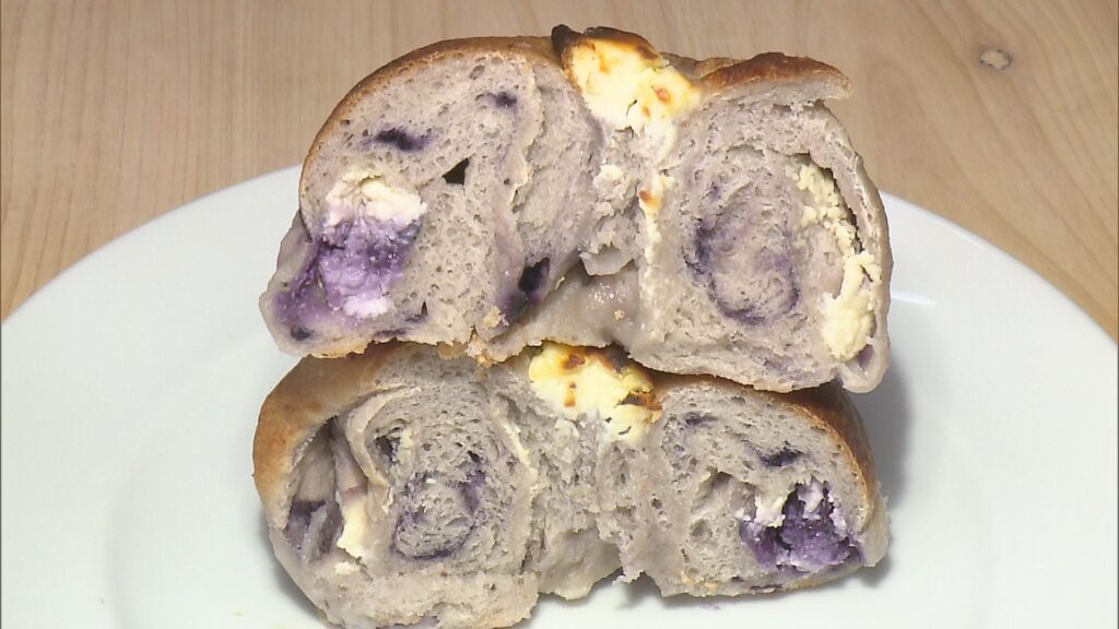 生地に練り込まれたブルーベリーの彩りが食欲を誘います。