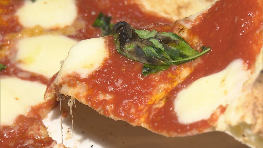 トマトソースはイタリア産、モッツァレラチーズは濃厚なもの、そしてフレッシュな有機バジルを使っています。