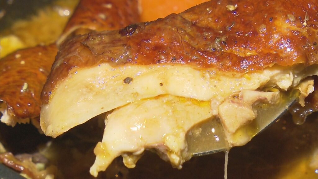 主役のチキンは身がほろほろ!燻製の香りがたまりません。