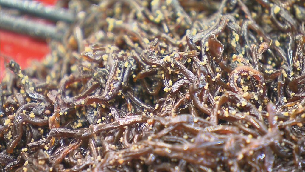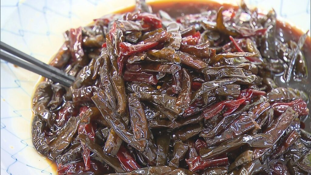 一口食べると……こりこり!ぷちぷち!食感が美味しい〜!💕甘辛の味付けがたまりません。